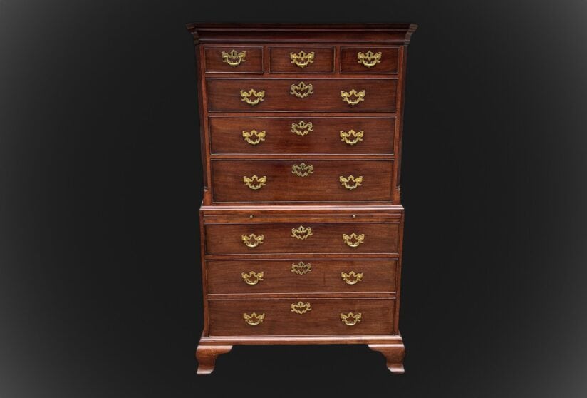 George II mahogany chest on chest circa 1750 with elegant proportions and original condition.